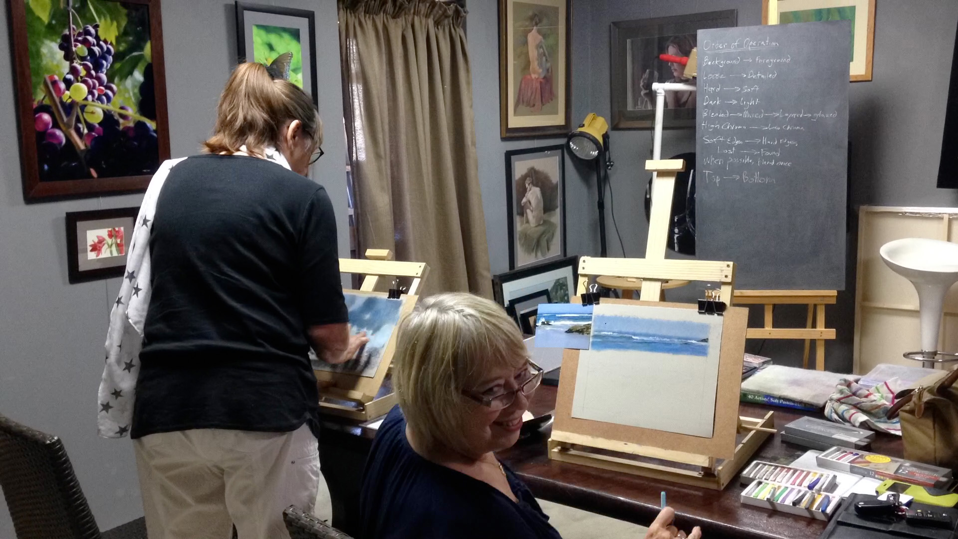 The Art Boutique in Kleinmond, South Africa hosted Chris for a 2 day Landscapes & Seascapes workshop. Students worked on paintings from photo in a pastel, oils, or acrylic.